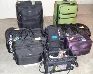 Trial Run With Luggage February 7, 2013 | Alan Trial run with luggage: Two suitcases, two duffle bags, two carry-ons, camera bag, and Kiara in her carrier.