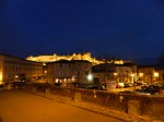 La Cite has over 3 kilometers of outer wall, nearly 1.6 miles, and we wandered through approx. 500 yards in all on this first visit. We headed over from our apartment about 20 minutes before sunset and approached the avenue that goes up the hill to one of the entrances between the two outer walls. From our vantage point we could see seven of the 52 towers on the outer walls.