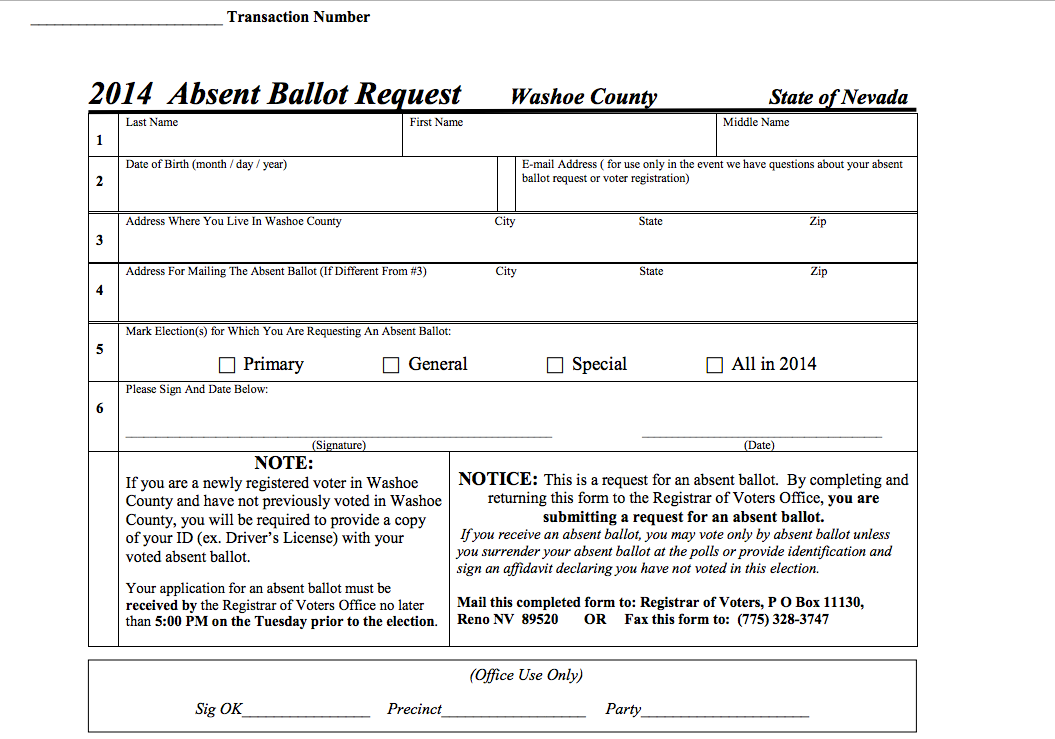 Washoe County Absent Ballot Request
