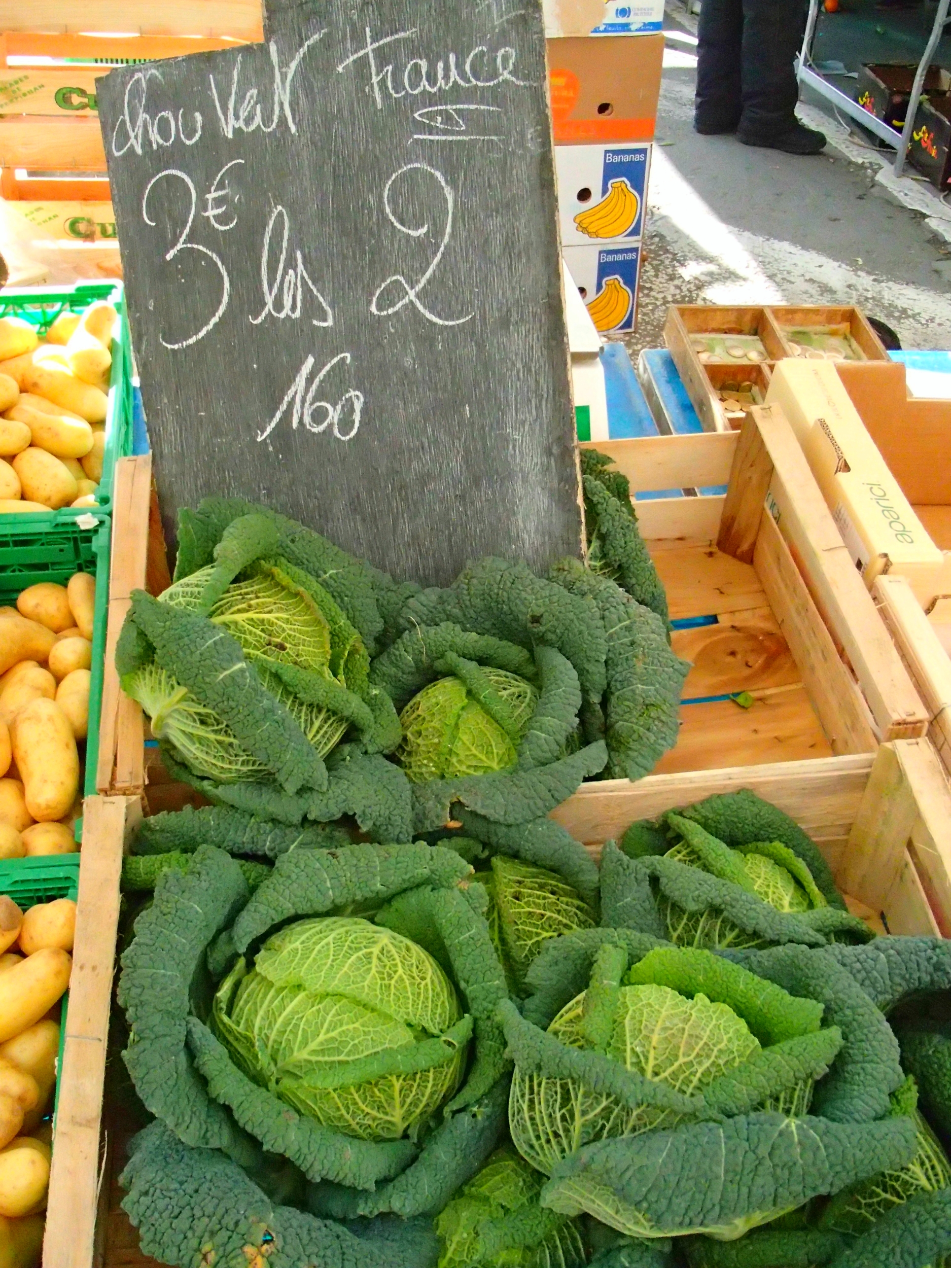 Chou vert (green cabbage) offered for sale in the open-air market in Place Carnot (the town square.) February 21, 2015February 21, 2015 | Alan Chou vert (green cabbage) offered for sale in the open-air market in Place Carnot (the town square.)