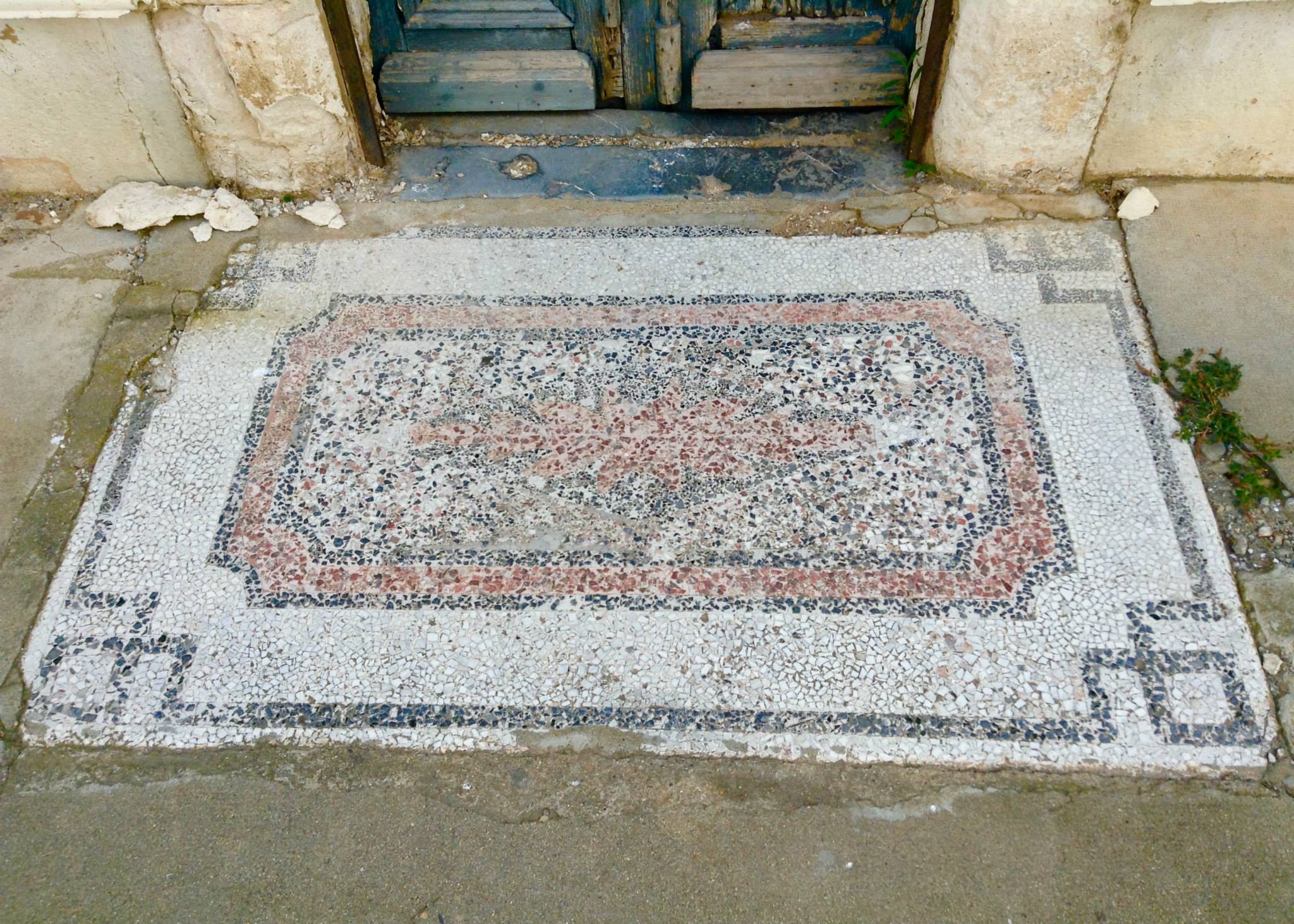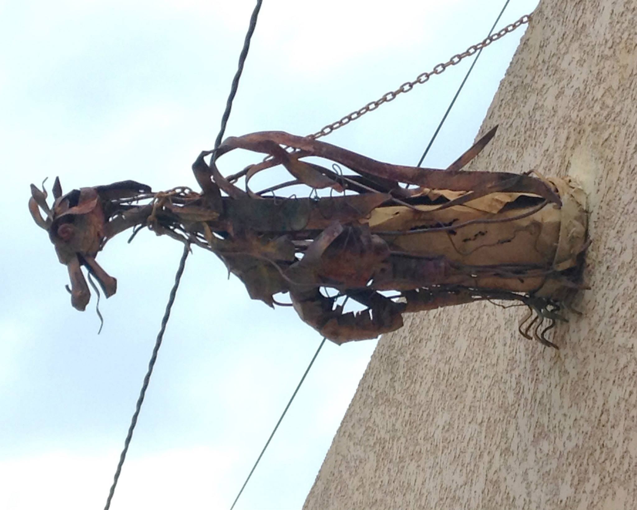 Along the way we saw a couple of interesting buildings. One reminded us both of an old firehouse. One had a unique mosaic welcome mat in the concrete in front of the door. Another had metal gargoyles above the garage.