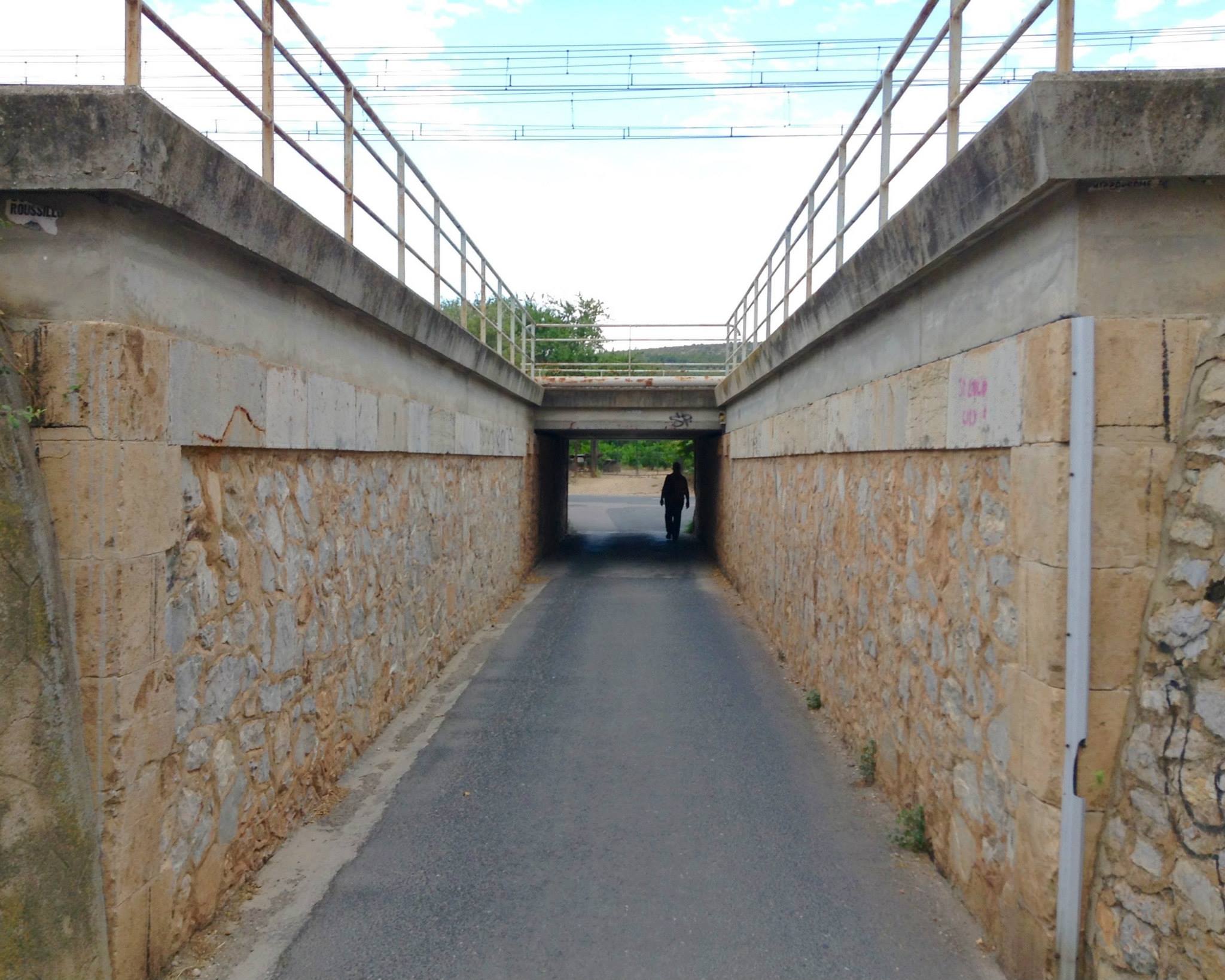 Less than 5 feet past the back corner of the wine coop building was an under pass for the train tracks. Honestly those train tracks looked much further away in Google maps. Good for us!