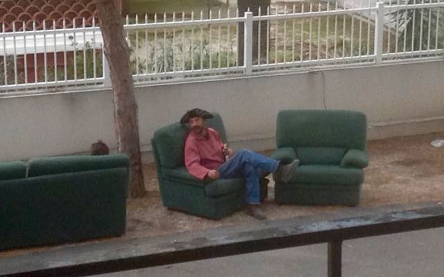 Sitting on a green chair next to a green couch (neither of which were there earlier in the day), was a pirate. Yep, a pirate. He was wearing a tricorn hat, bright pink shirt and drinking a bottle of rum . . . nope not kidding!