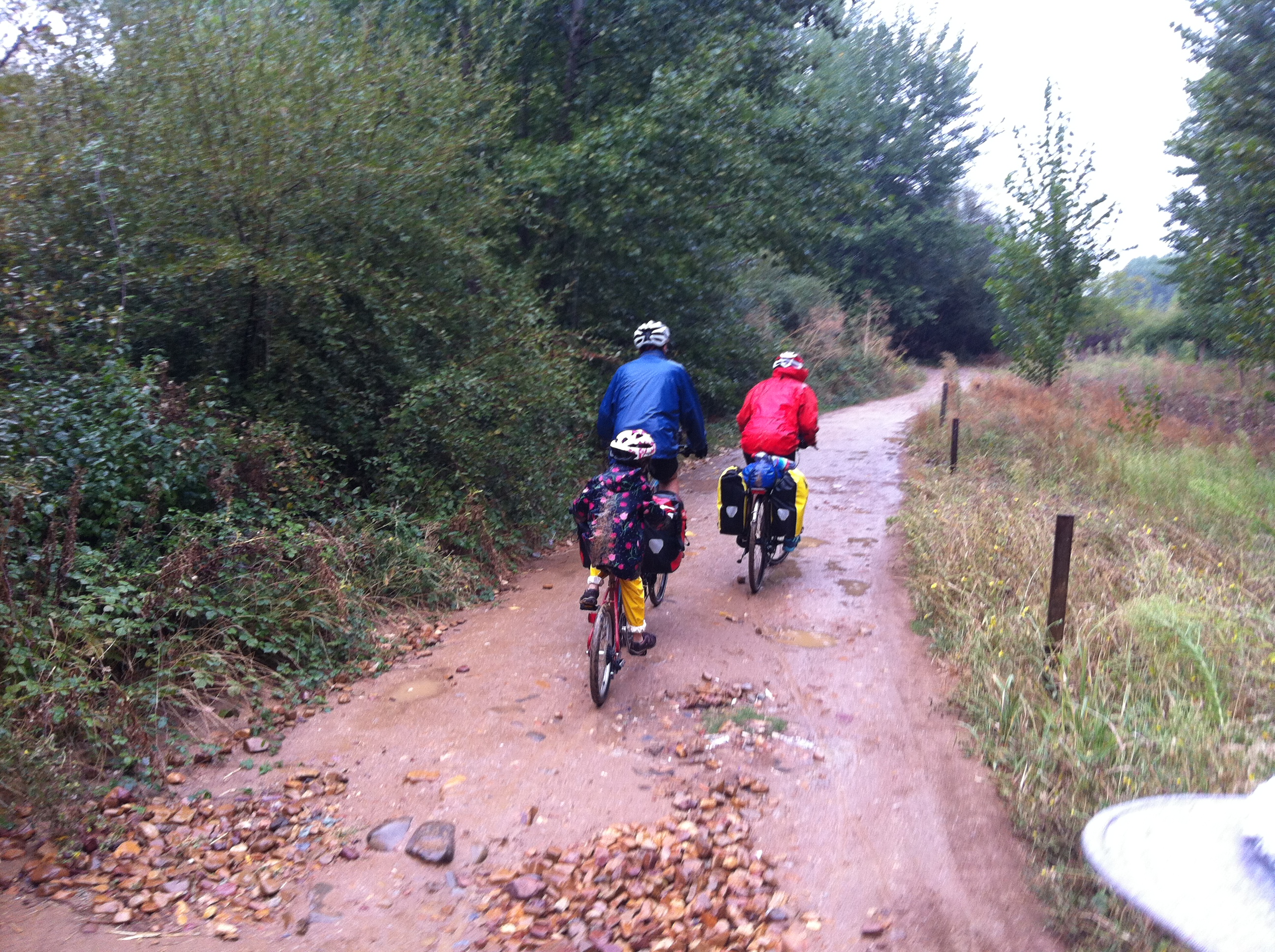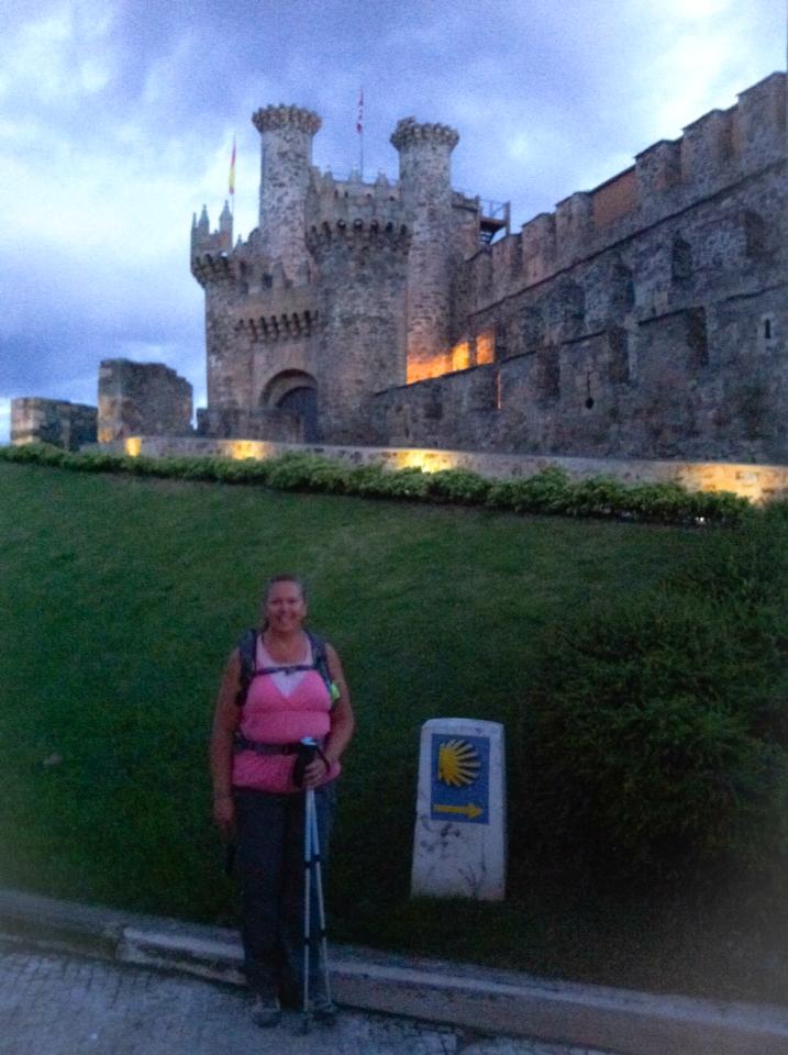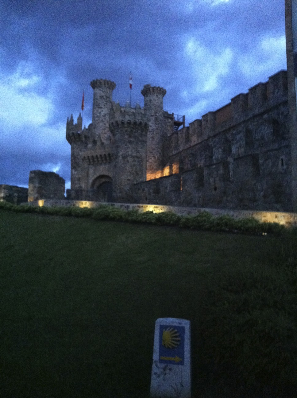 Pilgrim statue and Camino marker, PonferradaSan Esteban, PonferradaTracy at Castillo de los Templarios (Templar castle), PonferradaCastillo de los Templarios (Templar castle), PonferradaPons Ferrada (Iron Bridge) from which the town derives its name, PonferradaFountain in PonferradaCastillo de los Templarios (Templar castle), PonferradaChurch in CacabelosIglesia Santa Maria, CompostillaTracy with the statue of St. James at our hotel in CacabelosCastillo de los Templarios (Templar castle), PonferradaCamino marker, CacabelosIglesia Santa Maria, CompostillaLeaving PonferradaMucky trail outside of CompostillaAlan at Castillo de los Templarios (Templar castle), PonferradaPilgrim grate on the church in ColumbrianosCastillo de los Templarios (Templar castle), PonferradaMadonna and Child, near CompostillaErmita San Blas, ColumbrianosStork nest in lamp post near Fuentes NeuvasVista near CamponarayaPedal-grino family of three on muddy trail near CacabelosPilgrim fountain at Fuentes NuevasThe oddity of a Spanish summer, raining and warm