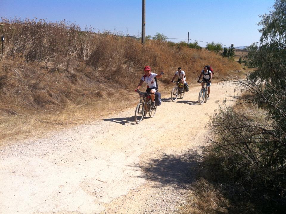 Alan at Portal de Castillo, Los ArcosBuen Camino (Good Journey) in cement outside of Los ArcosRuins near Torres del RioGardens near Portillo de las Cabras, Pass of the Goats, Los ArcosIglesia Santa Maria de los Arcos, 12th centuryTracy at Portal de Castillo, Los ArcosRock stacksHaybales on the trail to SansolAfter 20 kilometers, this looks inviting — a “pedal-grinos” gear in Los ArcosPlaza de Santa Maria de los Arcos with bell tower“Pedal-grinos”Entryway to Iglesia de Santa Maria de los Arcos, 12th centuryOur albergue, Casa Mariela, in Torres del RioVineyards between Villamayor de Monjardin and Los ArcosRuins of Cugullo between Villamayor de Monjardin and Los ArcosSanto Sepulchro, 12th century, Torres del RioCamino sculpture in Los ArcosRuins of Cugullo between Villamayor de Monjardin and Los ArcosStacked RocksCross-ribbed vaults creating an 8 point star, Santo Sepulchro, 12th century, Torres del Rio13th century crucifix of Santo Sepulchro, 12th century, Torres del RioPilgrim fountain in Plaza de Santa Maria, Los Arcos