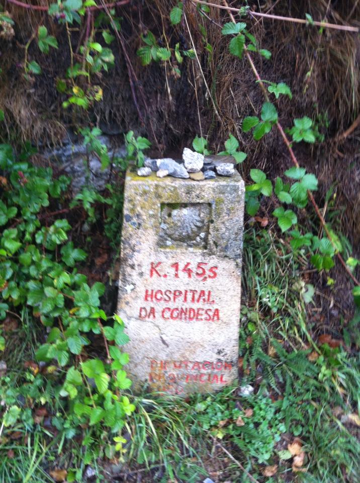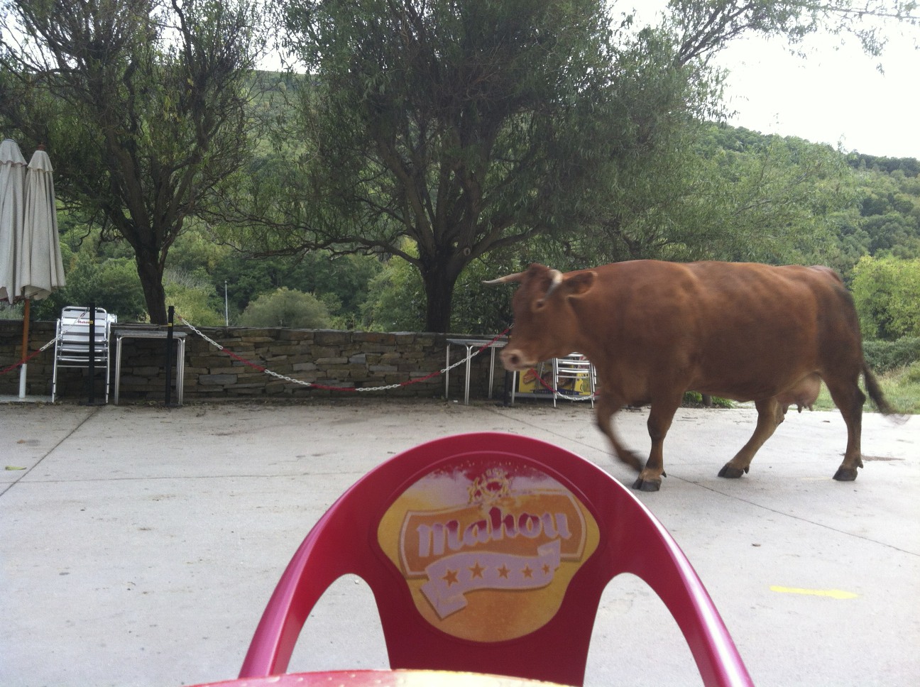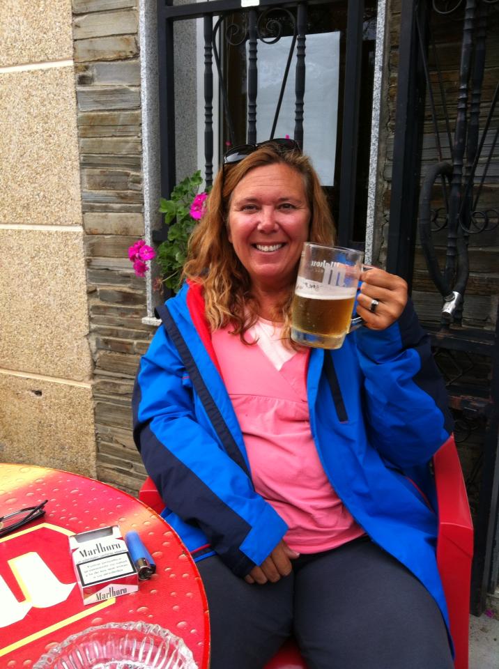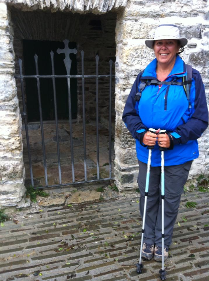 Alan with a much better brace after visiting the local Farmacia in TriacastelaTriacastelaChurch in TriacastelaTracy walking along the tree lined path near Hospital de la CondesaTracy at the Ant Sculpture near FonfriaFrench pilgrim who used this “wheel barrow” arrangement for his camping gear, TriacastelaWhole bunch of cows returning from their day pasture walked right by us at the bar in TriacastelaYep, cow walking by the bar in TriacastelaPilgrim wishes at the bar in TriacastelaOur albergue in TriacastelaTracy at the peregrino monument at Alto San RoqueCompleto sign being hung just minutes after we checked in to our albergue in TriacastelaTracy at the tiny opening to the Iglesia San Juan, 11th century, Hospital de la CondesaIglesia San Juan, 11th century, Hospital de la CondesaTracy at Iglesia San Juan, 11th century, Hospital de la CondesaRock wall near FillovalView from Alto do PoioView from Alto San RoqueCement markers of the Galicia provinceRock wall near TriacastelaThatch-covered firewood storageIglesia San Esteban, outside O’CebreiroTracy enjoying her post hike beer in TriacastelaVista near TriacastelaJohn Deere tractor in TriacastelaVista near Triacastela