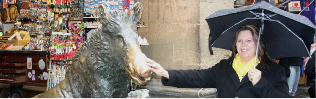 Alan rubbing the snout of Il Porcellino (Italian “piglet”) the Florentine nickname for the bronze statue of a boar. Originally intended for the Boboli Garden, it is currently in the Mercato Nuovo in Florence. Visitors rub the boar’s snout to ensure a return trip to Florence, a tradition that has kept the snout in a state of polished sheen.