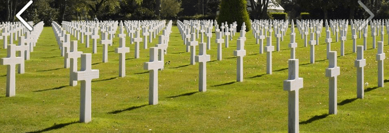 Deb and Tracy were able to locate the markers for the Niland brothers, whose story was part of the inspiration for the movie “Saving Private Ryan.” Though they did have to wait for a bit while a group of French tourists finished visiting, they did get the opportunity for a few photos of the brothers’ markers which are side-by-side in the cemetery. There are 45 sets of brothers buried here, only 33 of them are buried side-by-side. In addition there are 3 medal of honor recipients, a father and son (also buried side-by-side), 307 unknown burials and four women.
